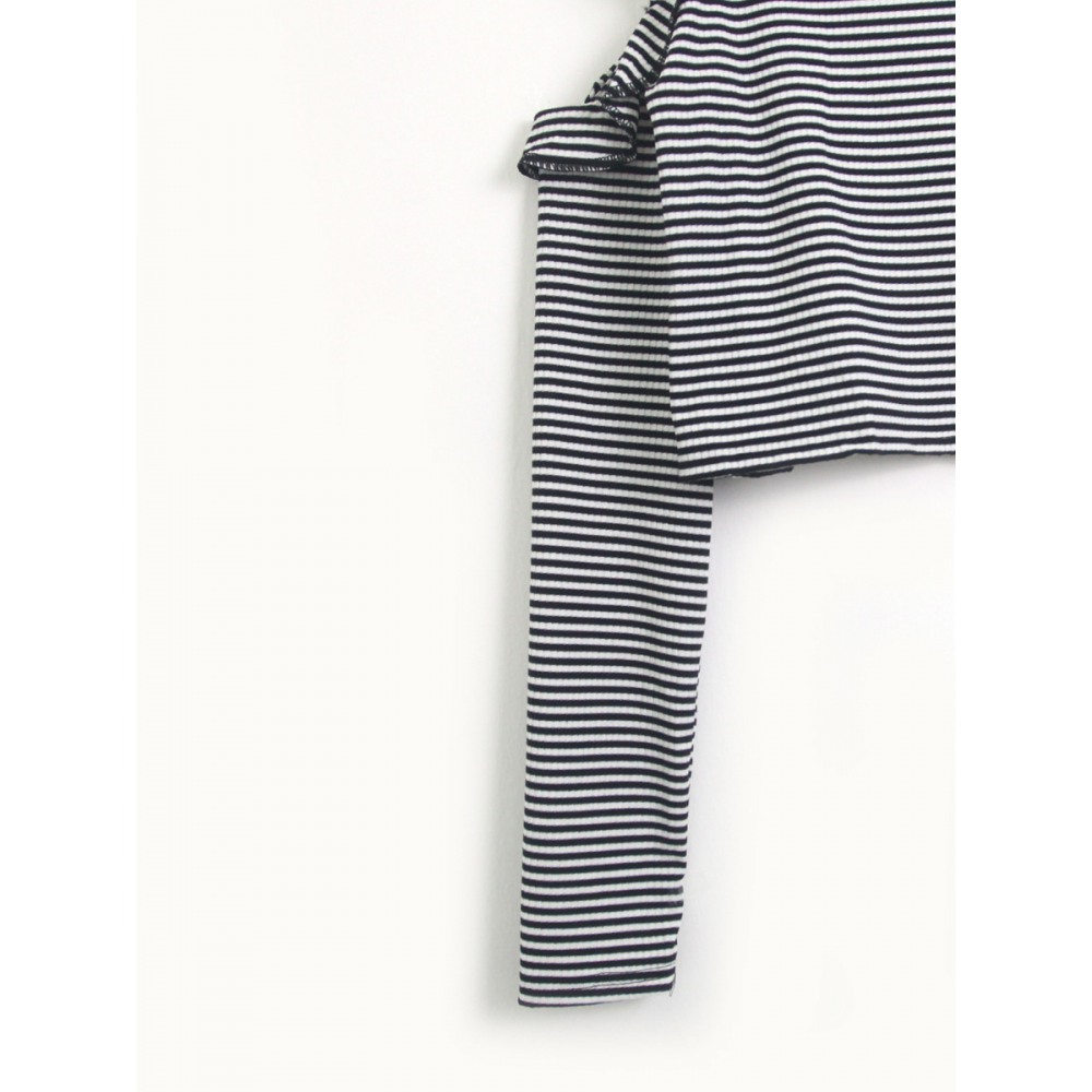 Autumn One-Shoulder Off-The-Shoulder Striped T-Shirt