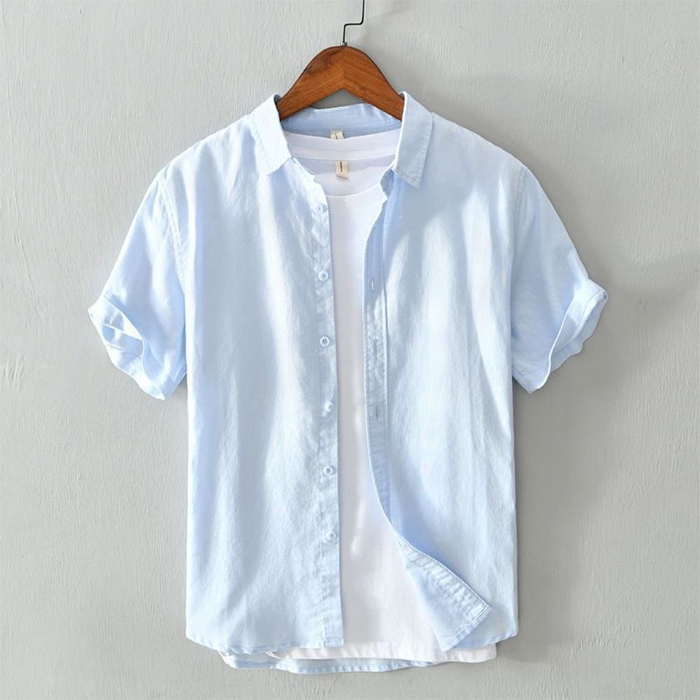 Breathable Linen Shirt Men's Short Sleeve Slim Fit Shirt