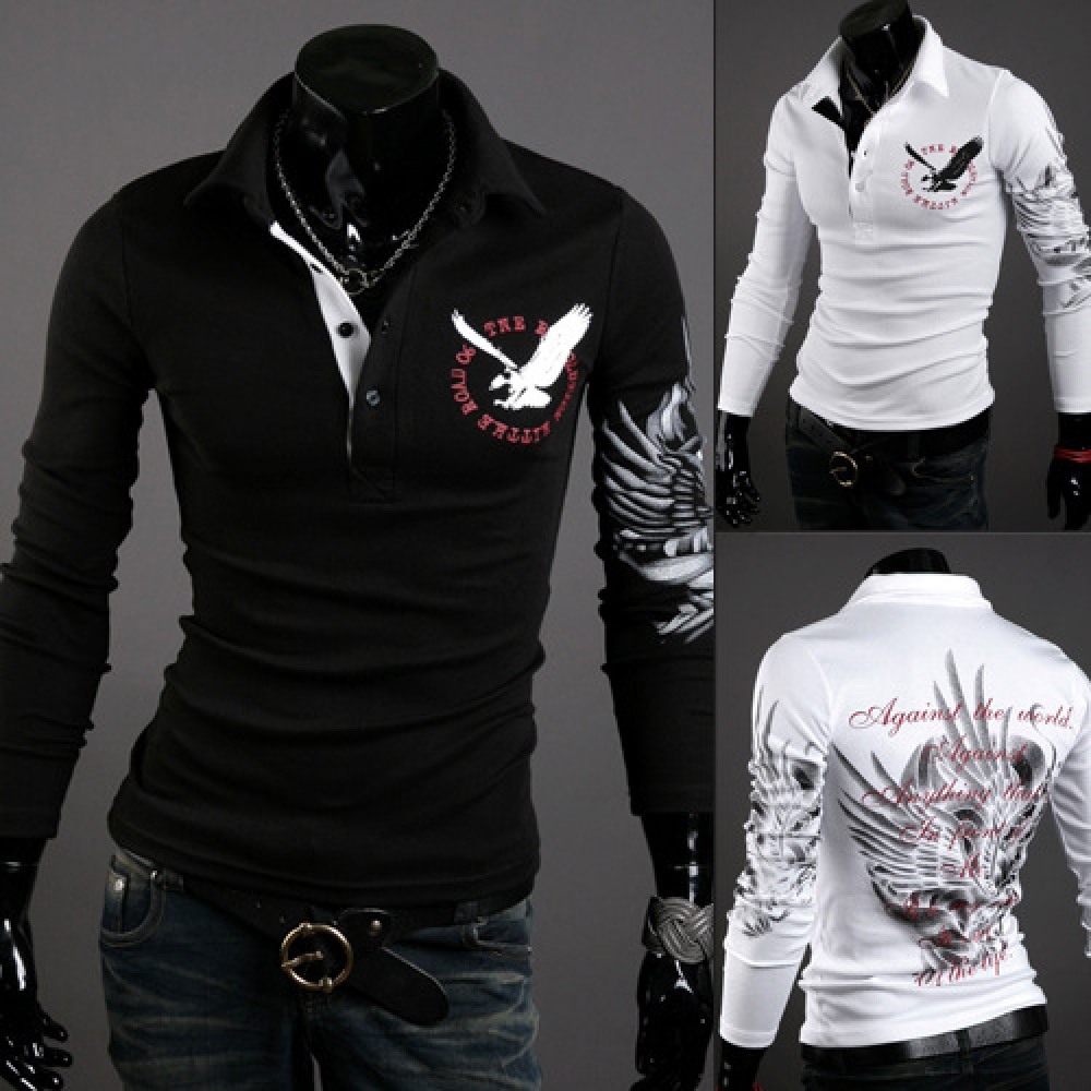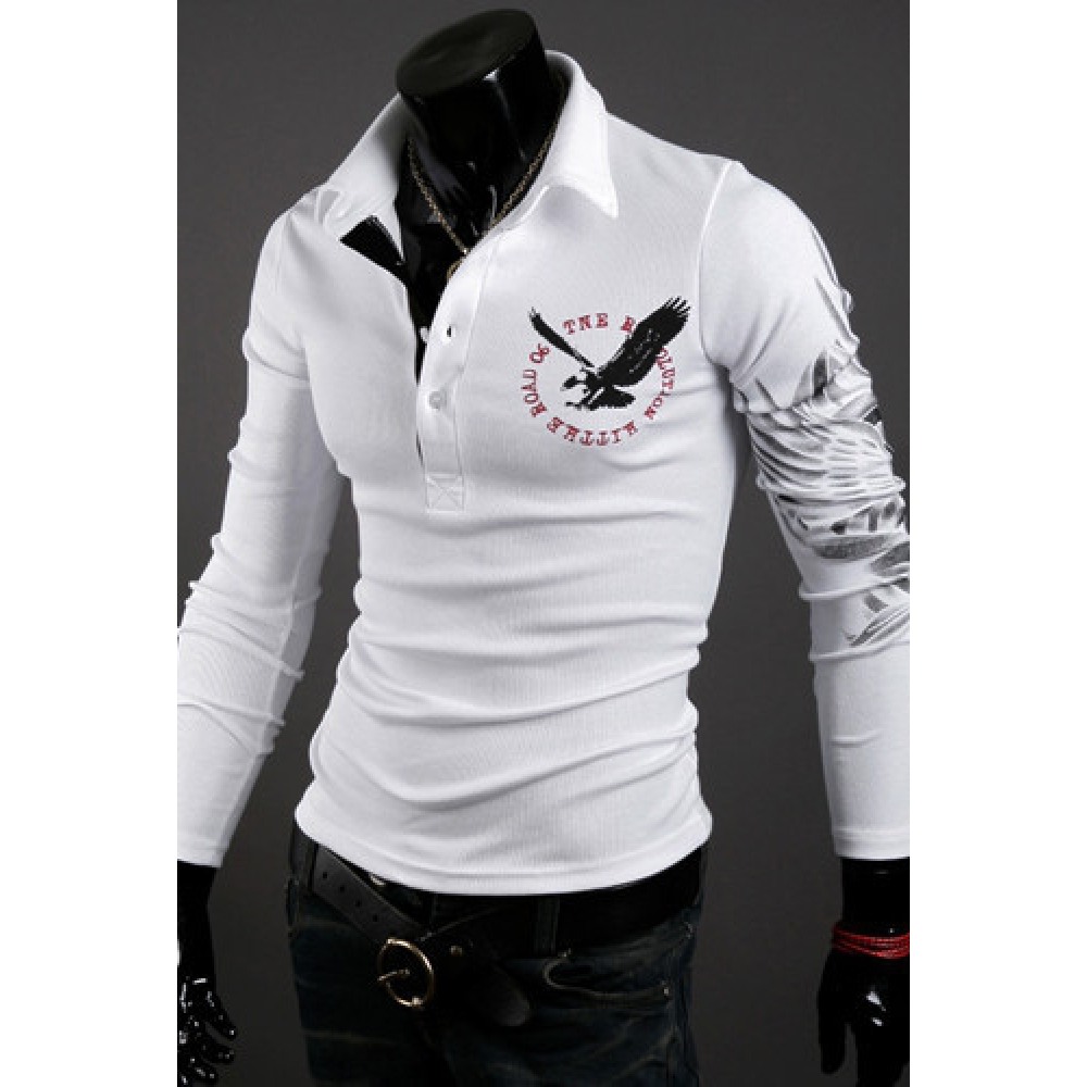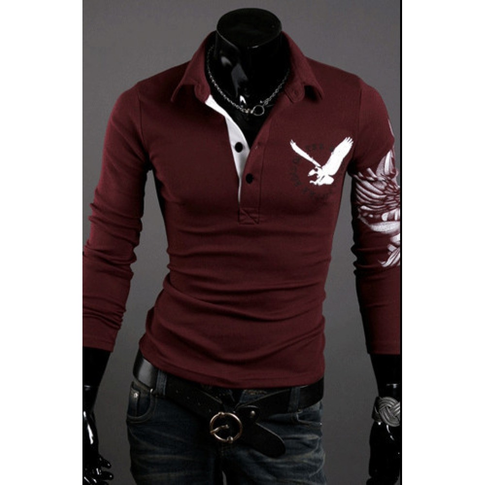 Eagle Tattoo Printing Men's Long-Sleeved Lapel Mens Long-Sleeved T-Shirt