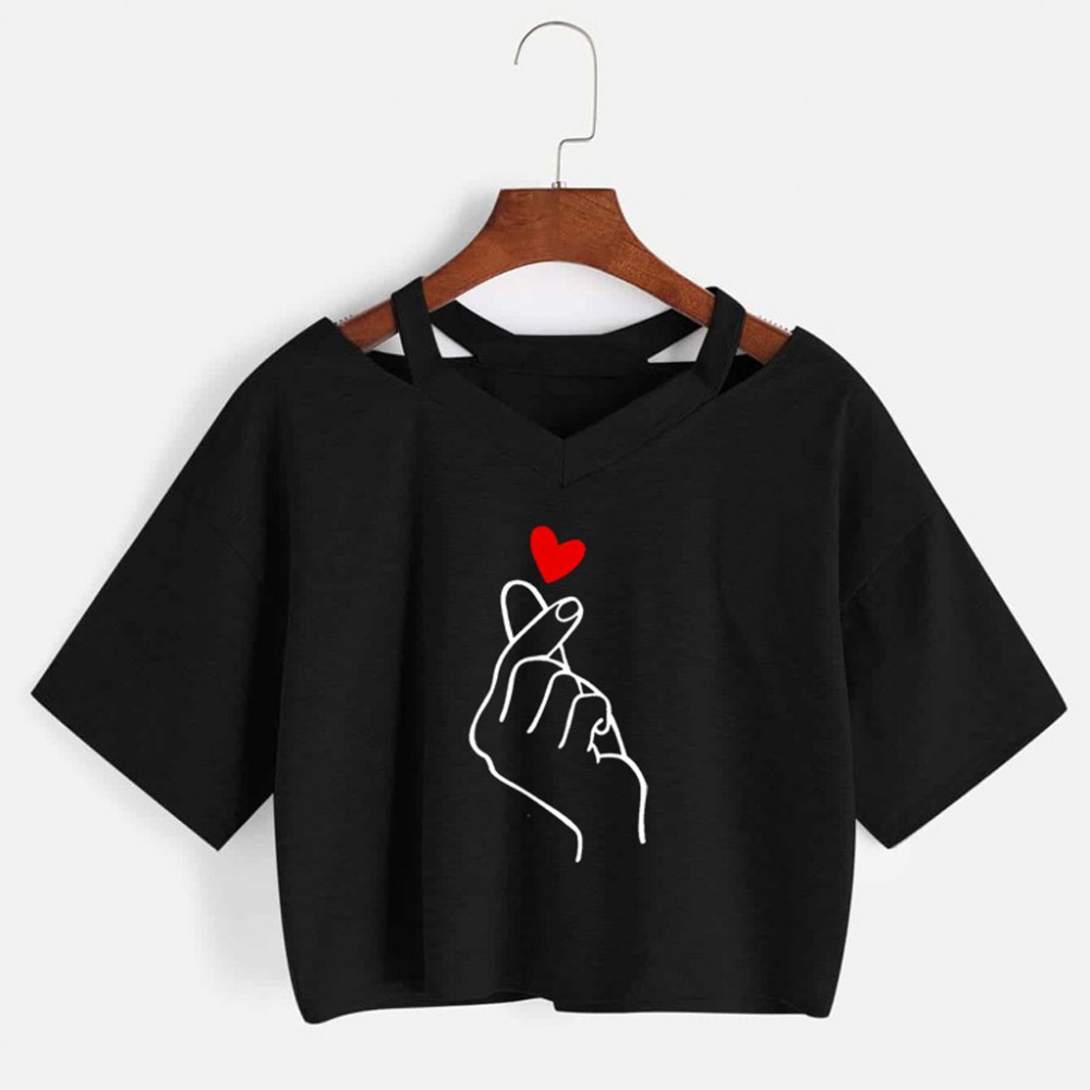 Explosive Love Printed V-Neck Short T-Shirt