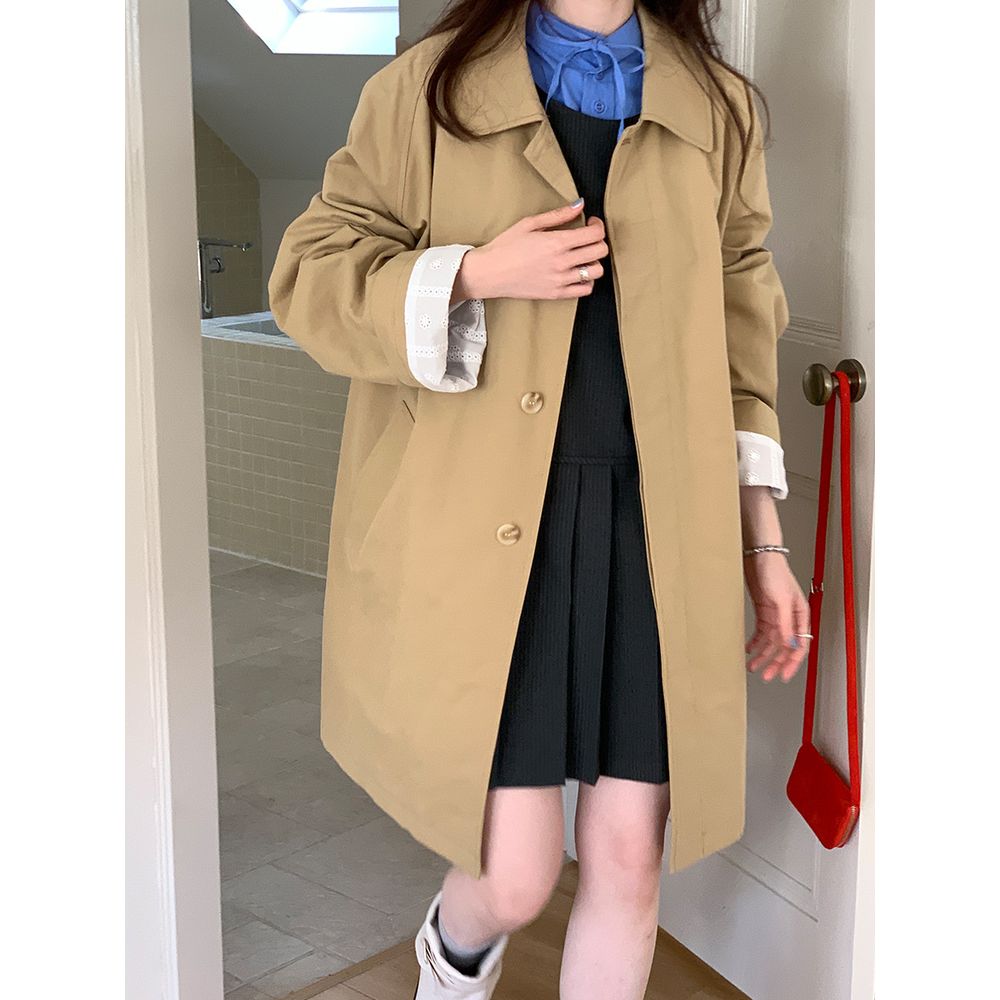 Lazy Style Trench Coat Women's High-End Simple Khaki Coat