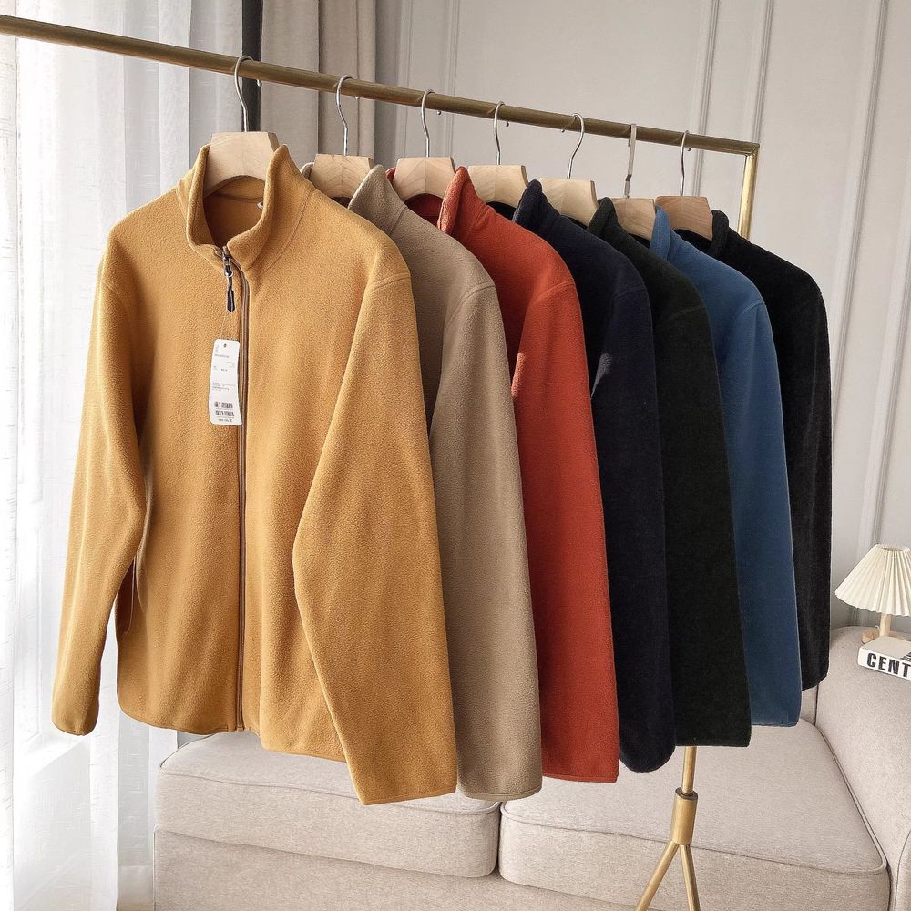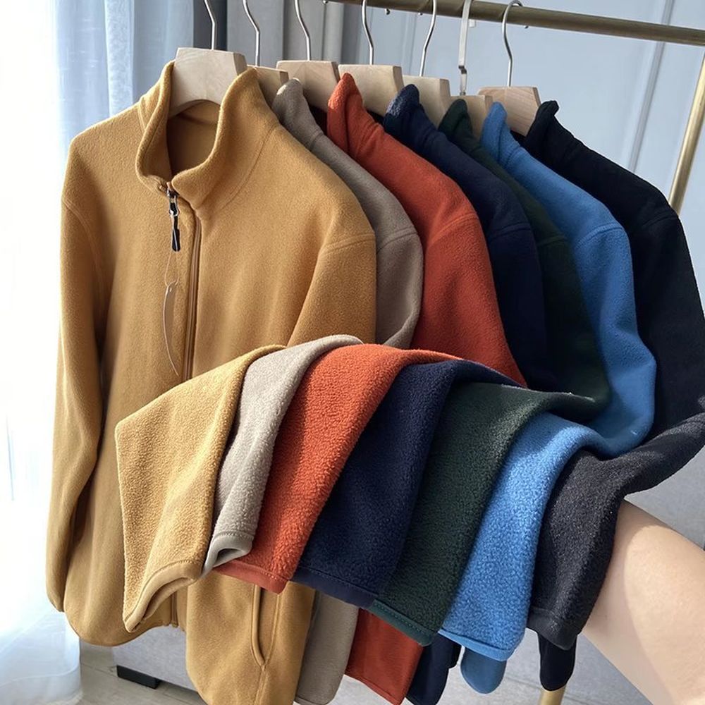 Men's Polar Fleece Zipper Stand Collar Jacket Long Sleeve Thickened Long Sleeve Warm Jacket