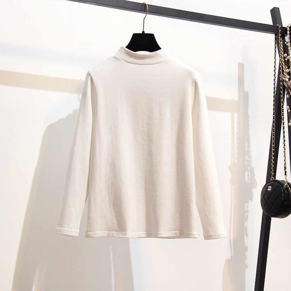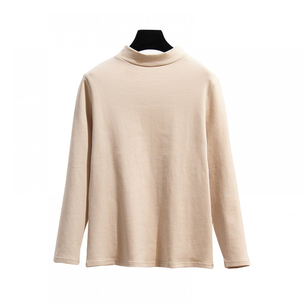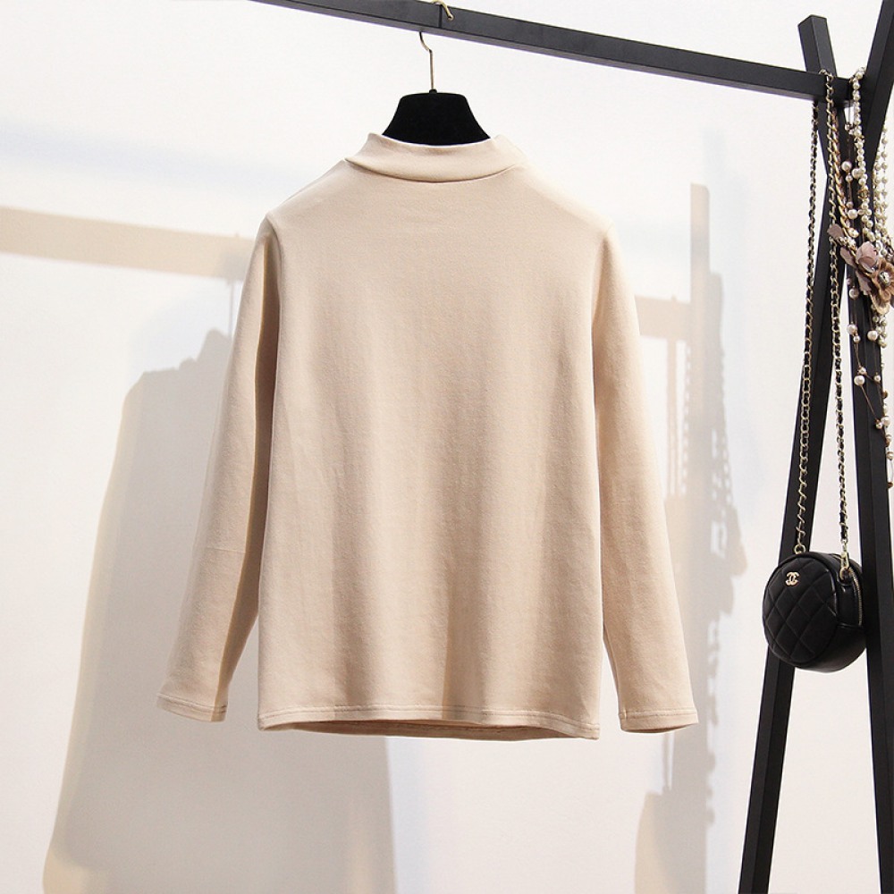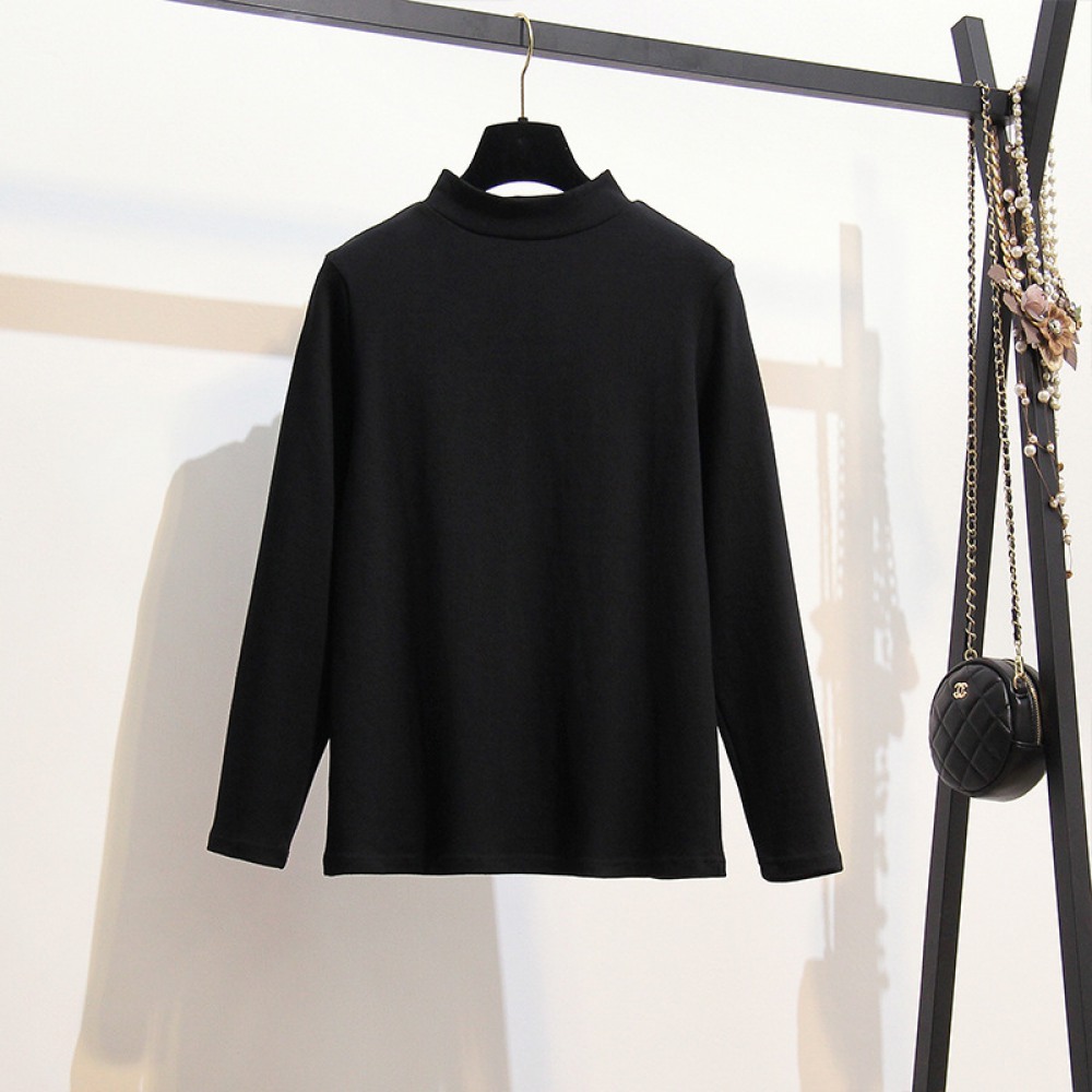 New Fat Extra Large Size Women's Brushed Thickened High-Neck Bottoming Shirt Solid Color Long-Sleeved T-Shirt