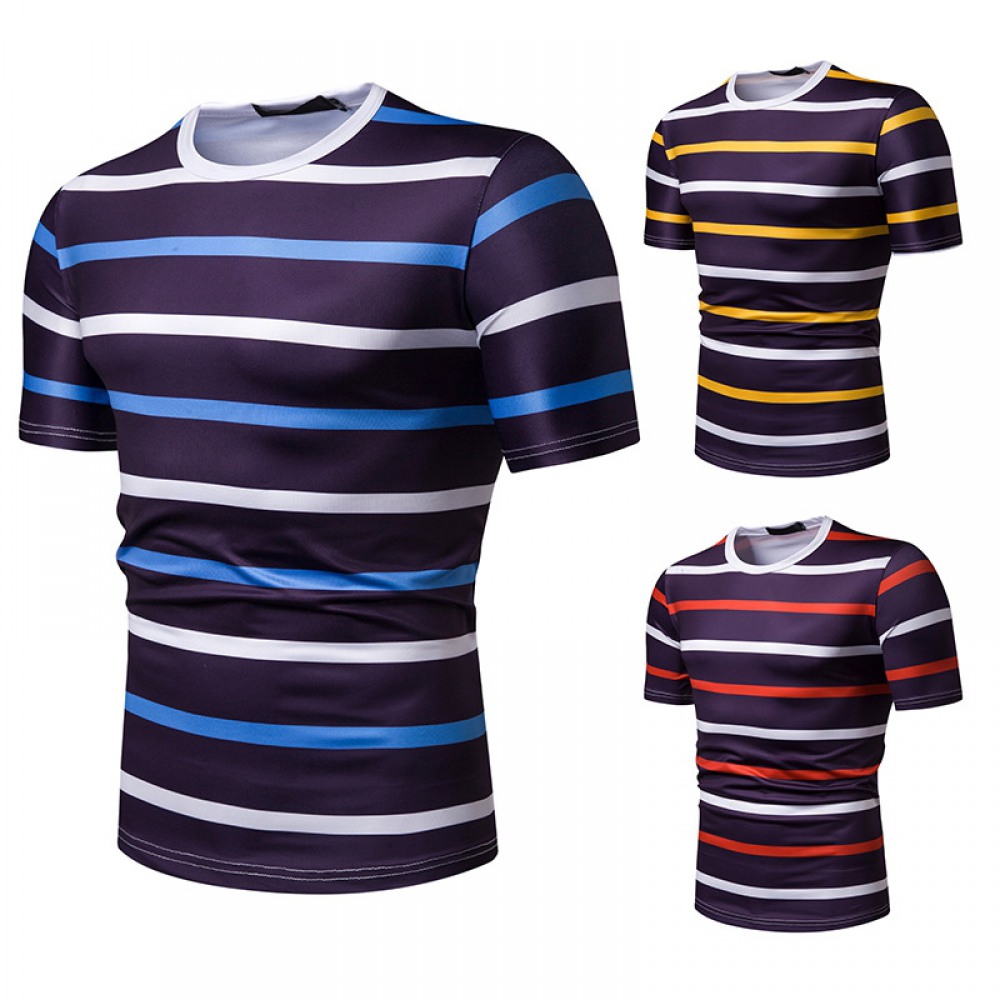 New Summer Men's Short-Sleeved T-Shirt Mens Contrast Striped Slim Casual T-Shirt
