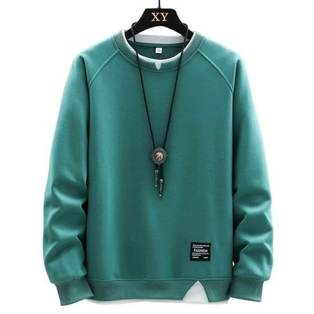 Spliced ??Crew Neck Hoodie Long Sleeve T-Shirt Top for Men