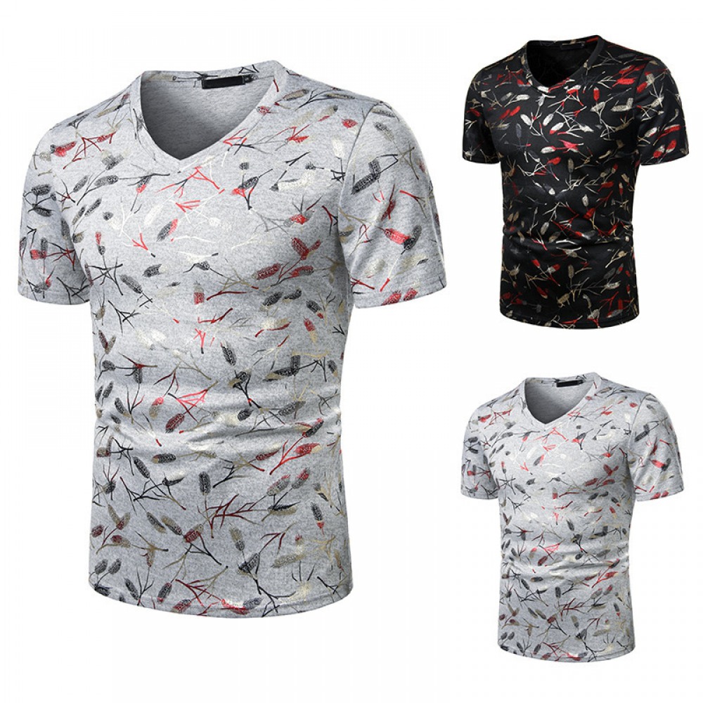 Summer Men's Nightclub Bar Fashion Casual Hot Stamping Printing Short-Sleeved Printed T-Shirt