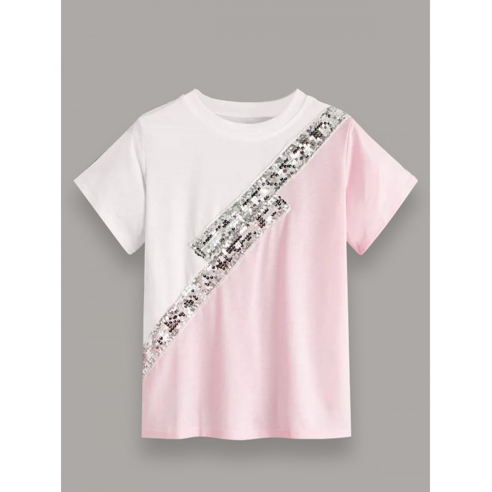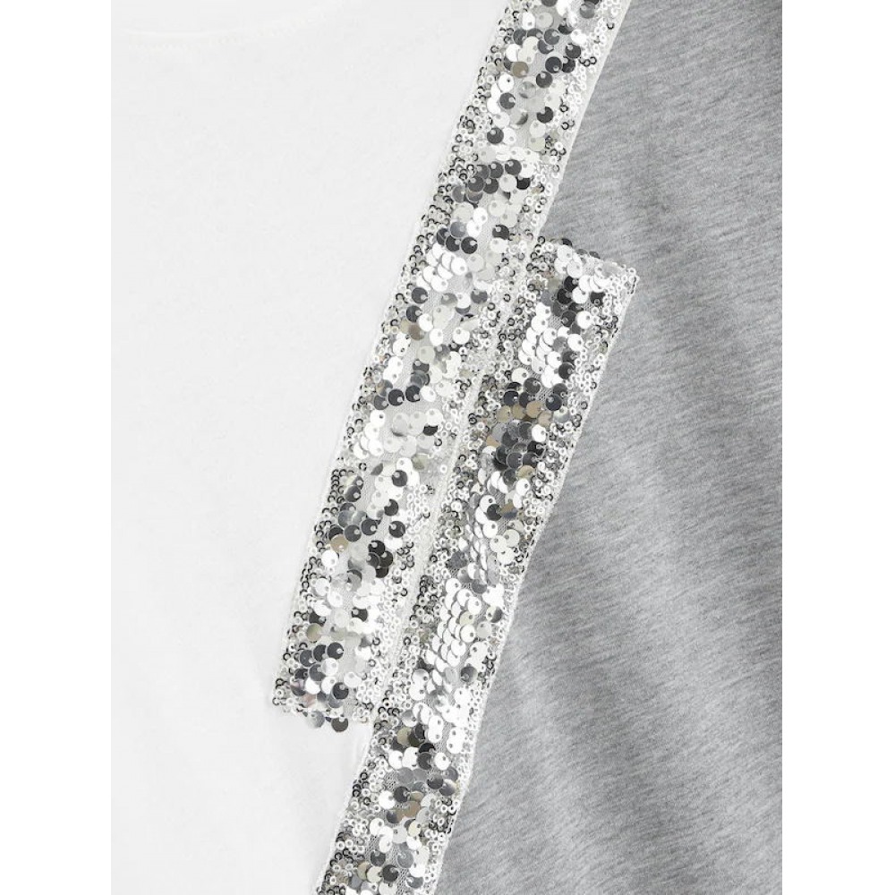 Summer New Color Matching Sequined T-Shirt
