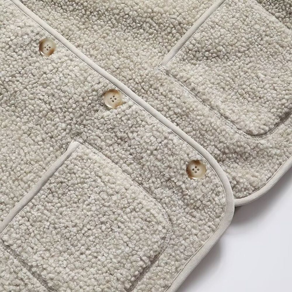 Women's Fashion Polar Fleece Round Neck Cardigan Jacket
