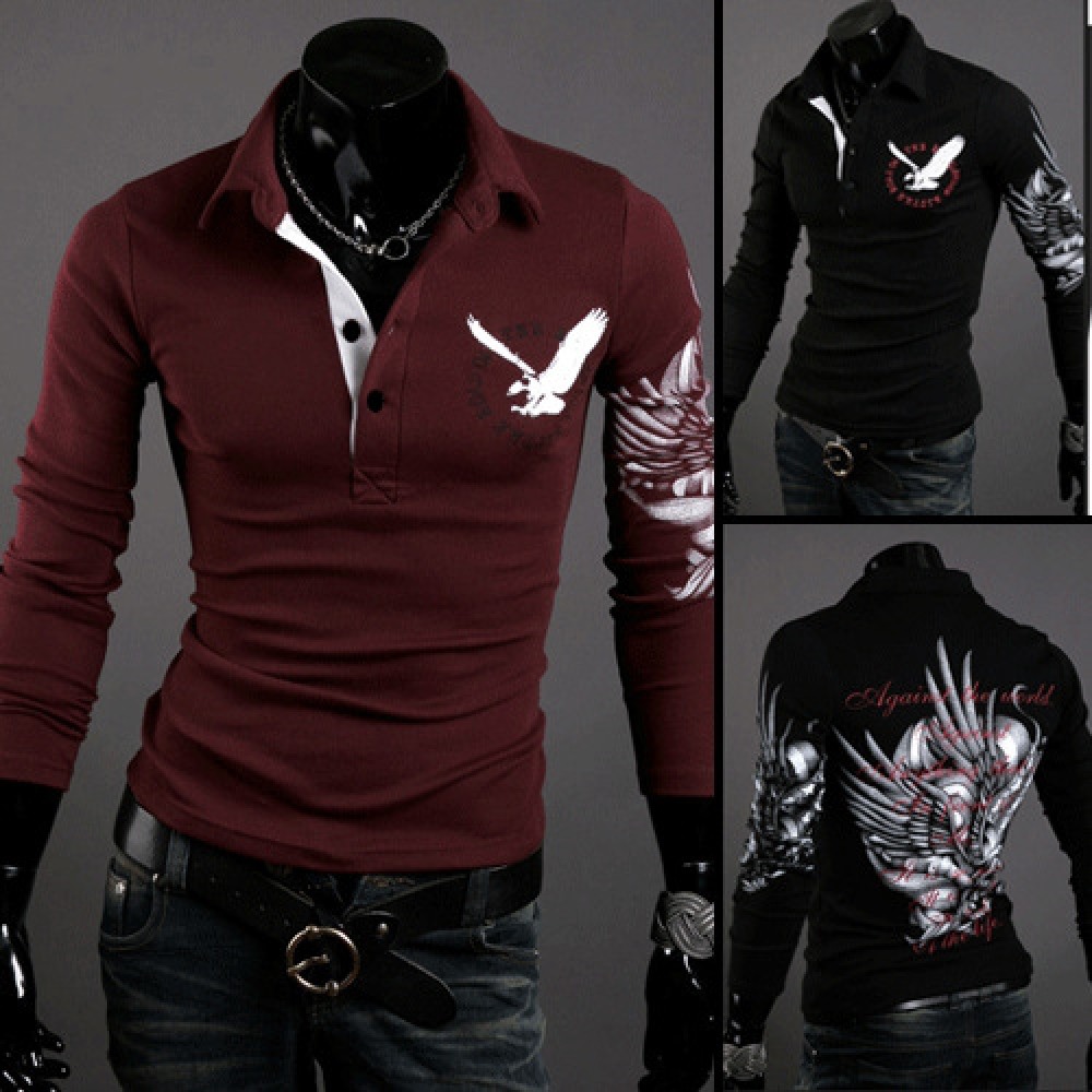 Eagle Tattoo Printing Men's Long-Sleeved Lapel Mens Long-Sleeved T-Shirt