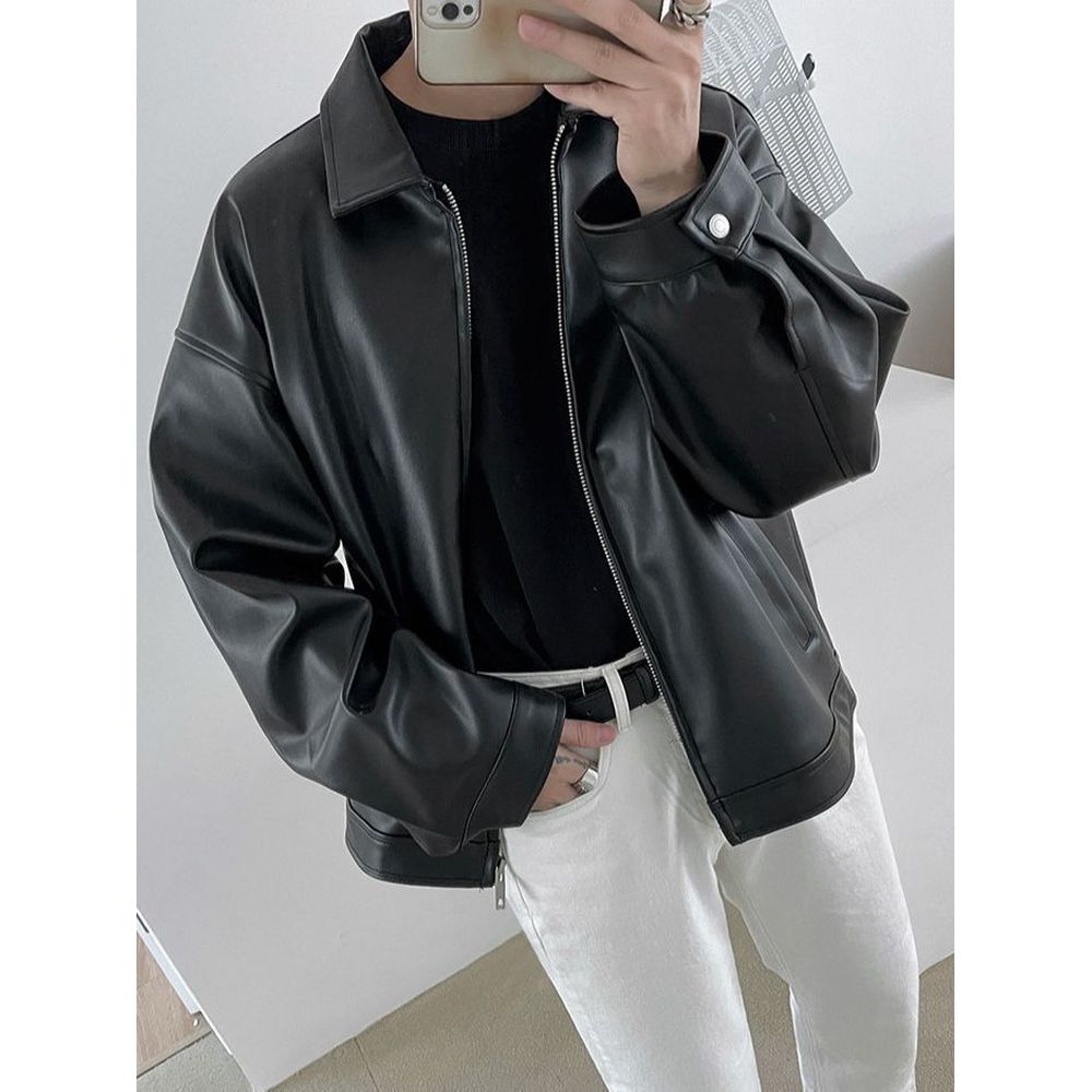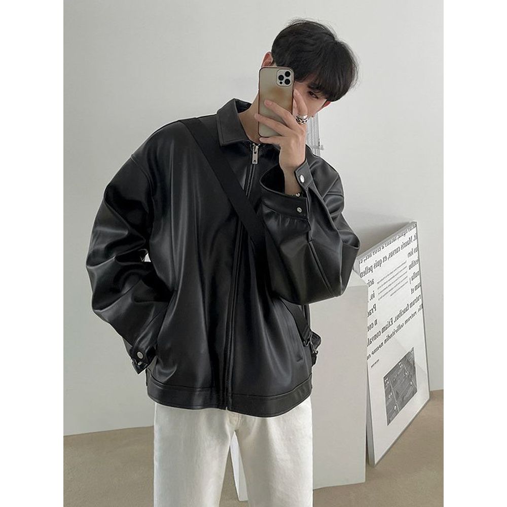 Men's Leather Jacket Casual Baseball Jacket