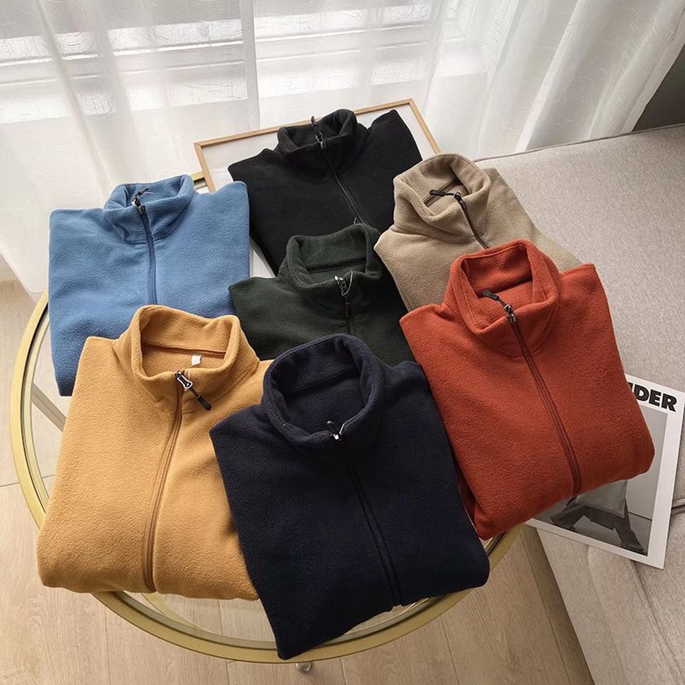 Men's Polar Fleece Zipper Stand Collar Jacket Long Sleeve Thickened Long Sleeve Warm Jacket