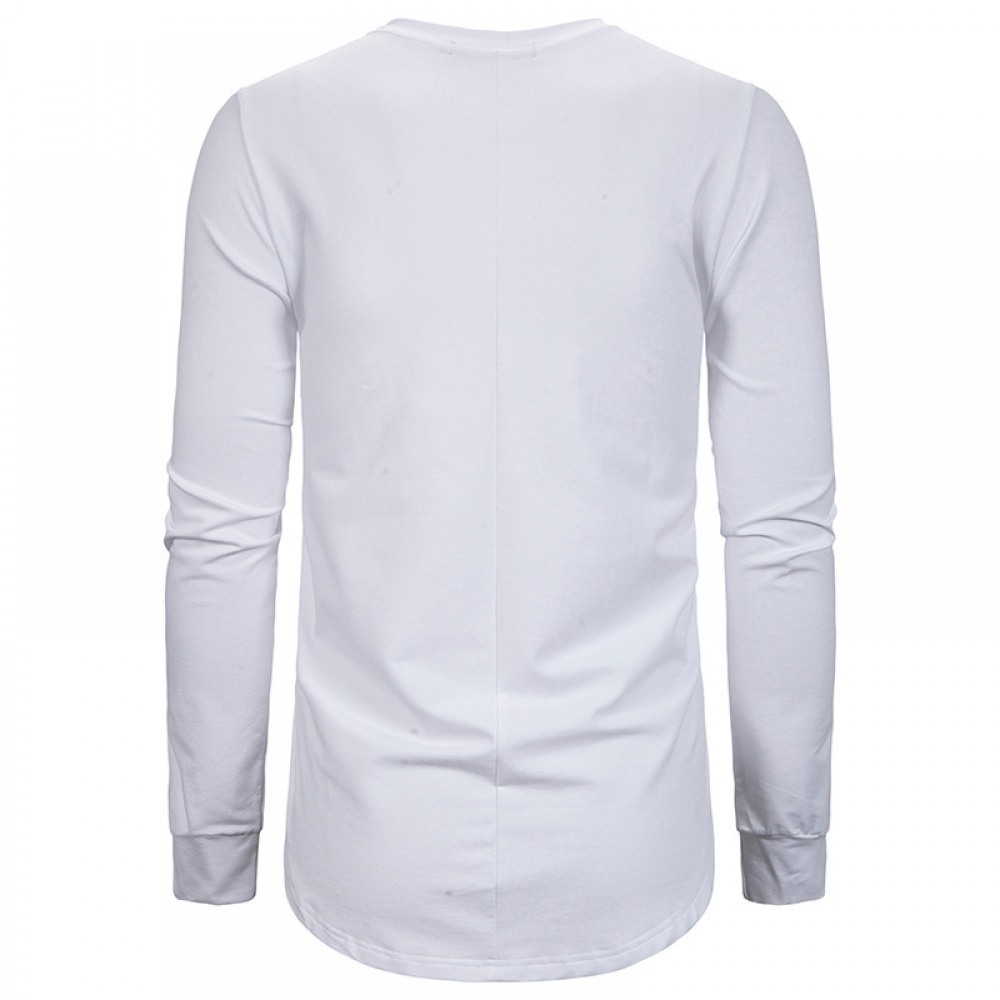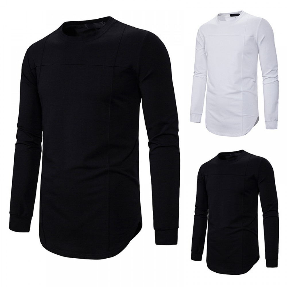 Round Neck Long T-Shirt Men's Loose Dark Trendy Men's Long-Sleeved T-Shirt