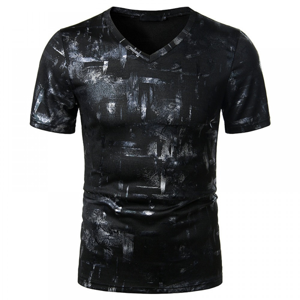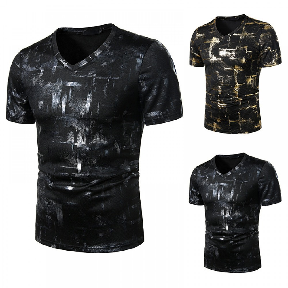 Summer Men's Nightclub Bar Fashion Casual Hot Stamping Printing Short-Sleeved Printed T-Shirt