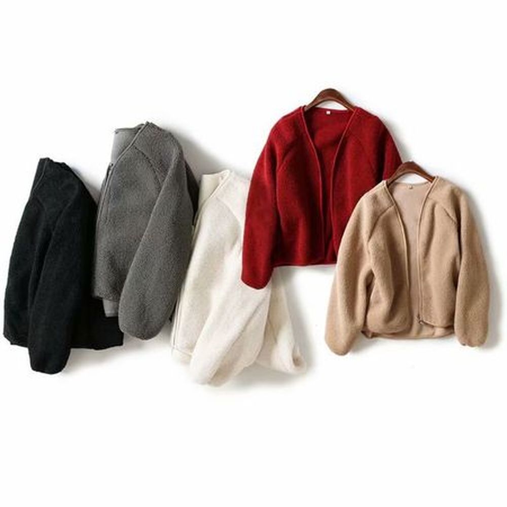 Women's Fashion Polar Fleece Round Neck Cardigan Jacket